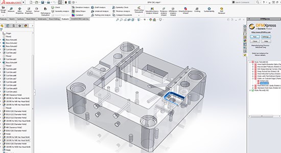 How to use the SOLIDWORKS tool, DFMXpress, to check hole depths, difficult to mill features, sharp corners, deep pockets, and more.