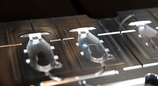 Add the finishing touches to your molded parts with custom coloring, texturing, inserts, laser engraving (pictured), inspection reports, and more.